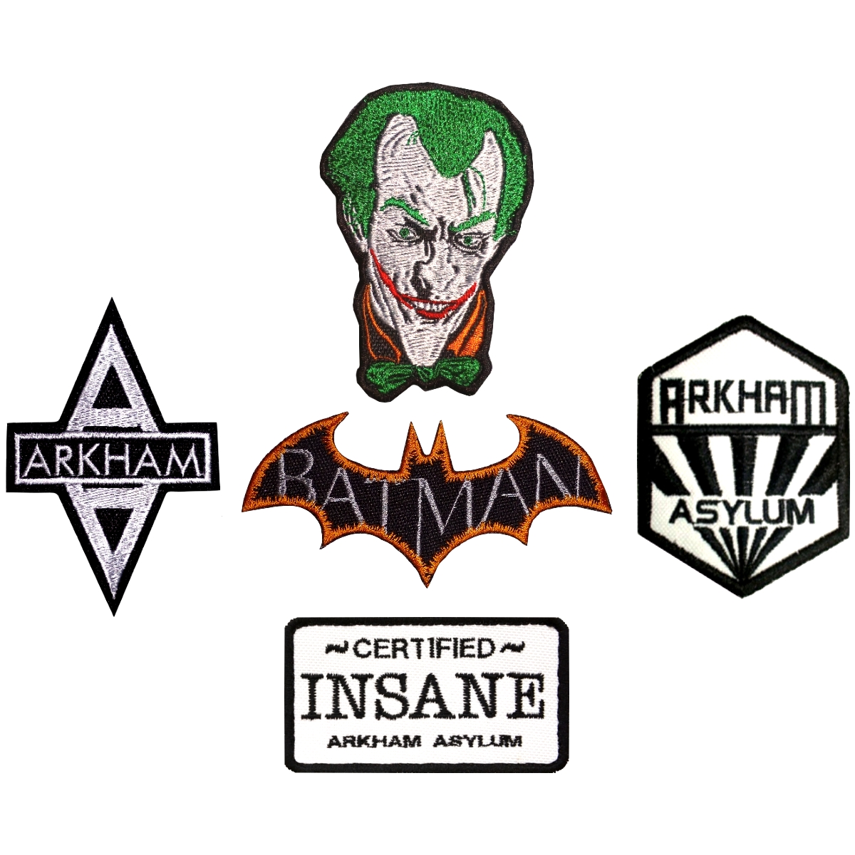 | Parches Arkham Asylum | Arkham Asylum, Certificado de Locura, Guasón Arkham Asylum, Logo Arkham Asylum, Logo Arkham Knight |