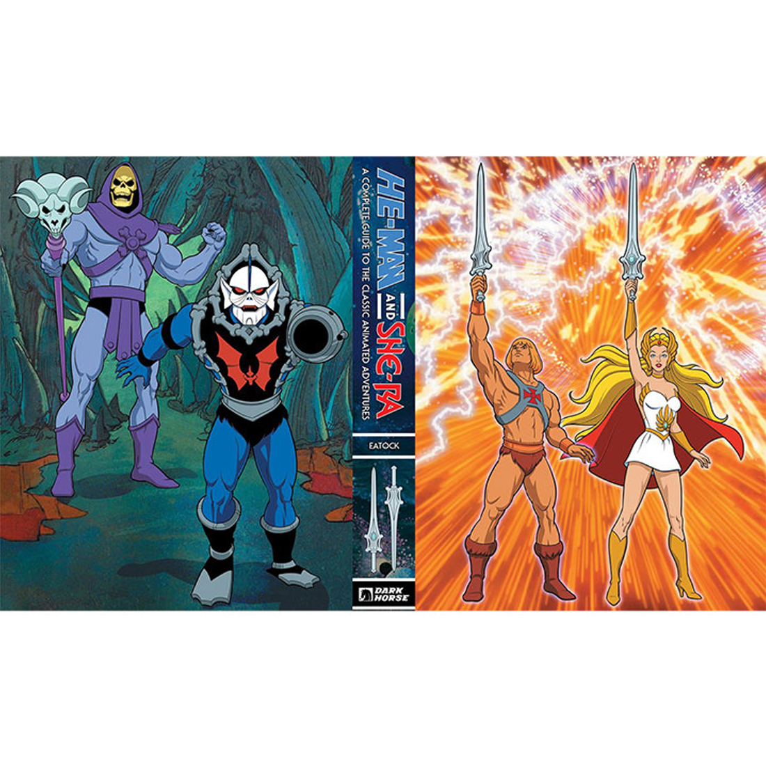 Escrito por el experto en dibujos animados James Eatock, He-Man and She-Ra: A Complete Guide to the Classic Animated Adventures cuenta con casi 600 páginas de sinopsis, procesos de animación y trivia para cada episodio de los dibujos animados Masters of the Universe y Princess of Power. .